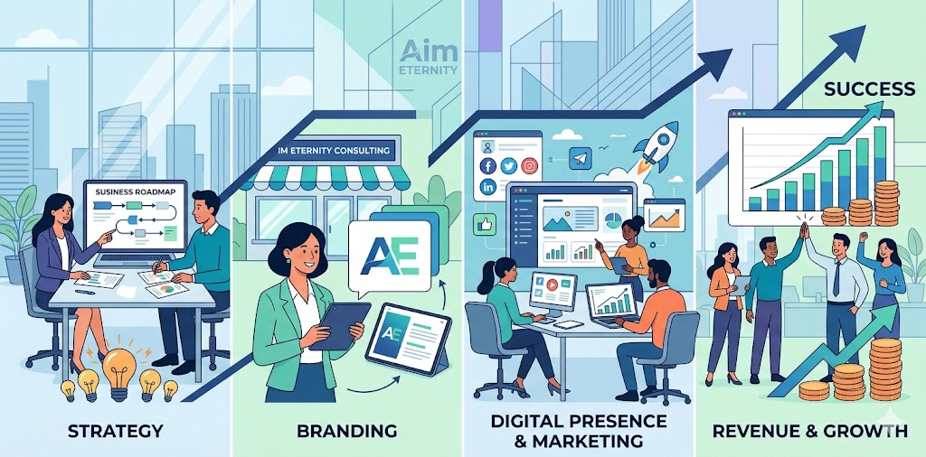 Our goal at Aim Eternity is not just to give advice, but to provide practical business solutions and growth strategies that businesses can implement in real life.